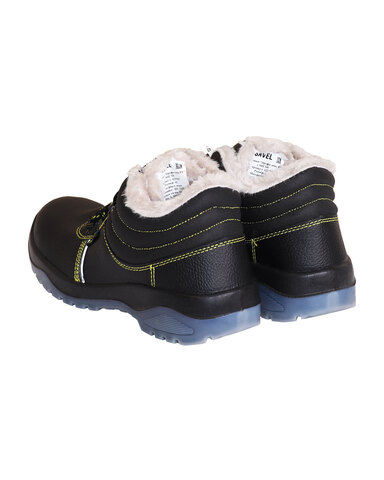 Верх обуви изготовлен из кожи со специальным покрытием для защиты от ОПЗ, МВ, МВО. Застежка на шнурок и металлические петли. Подошва двухслойная ПУ/ТПУ: полиуретан обладает амортизирующими свойствами, гасит ударные нагрузки, а также придает обуви лёгкость, комфорт и повышенные теплозащитные свойства. Термополиуретан обладает гибкостью и прочностью, поэтому обувь с подошвой из этого материала прослужит долго. Литьевой метод крепления подошвы обеспечивает с верхом обуви единое целое, в результате достигается полная герметичность в месте литья. Такой метод крепления является самым прочным и долговечным на сегодняшний день. Подошва сохраняет свои свойства в широком диапазоне температур и обладает стойкостью к воздействию масел, сырой нефти, нефтепродуктов. Мягкий кант деликатно обхватывает щиколотку, обеспечивает комфортное облегание и боковую поддержку, защищает от возможных боковых ударов, препятствует проникновению грязи и пыли внутрь обуви. Подклад в утеплённых ботинках серии "SAVEL-Профи" серого цвета и выполнен из искусственного меха. Верх ботинка имеет контрастные отделочно-скрепляющие строчки жёлтого цвета. Ботинки оснащены металлоподносками, предохраняющими ноги от удара и имеющими удельное сопротивление деформациям не менее 200 Дж, что регламентировано европейскими стандартами (EN-345). Антипрокольная стелька, расположенная между промежуточным слоем подошвы и штробельной подкладкой, дополнительно защищает стопы ног от проколов, порезов, сильных ударов и прочих производственных травм. Колодка обладает полнотно-размерными характеристиками защитной обуви, предназначенной для эксплуатации в зимний и весенне-осенний периоды, даёт возможность работать полный рабочий день с комфортом и без усталости.