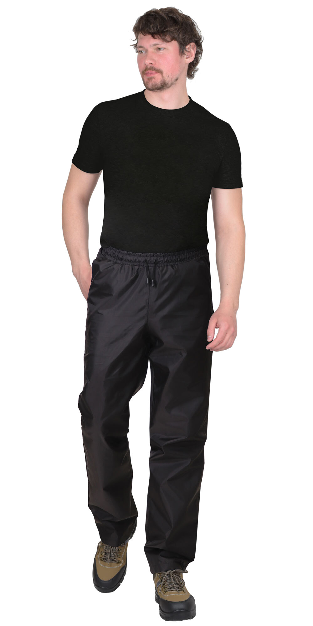 ГОСТ 12.4.280-2014, ТР ТС 019/2011 Брюки прямого силуэта, из полиэфирной водоотталкивающей ткани, без застёжки, с поясом, стянутым по всему объёму на резинку и со шнуром для регулировки ширины брюк по талии, с боковыми внутренними карманами с наклонным входом.