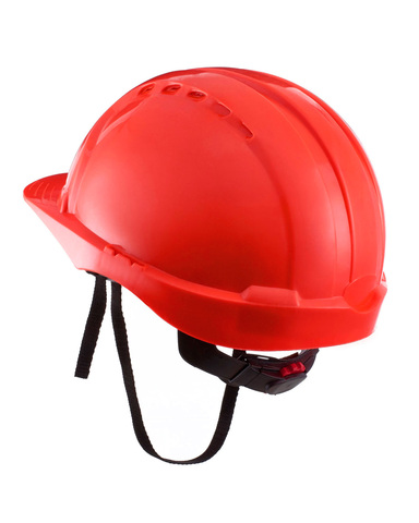 Каска выполнена из ударопрочного полипропилена, с удобным храповиком, регулирующим размер, а также с регулируемой глубиной посадки каски (3 положения). Корпус каски и внутренняя оснастка изготавливается из нетоксичных материала и устойчив к действию дезинфицирующих средств. Корпус каски изготавливают сплошным с козырьком, без внутренних ребер жесткости. Конструкция каски обеспечивает проветриваемость.