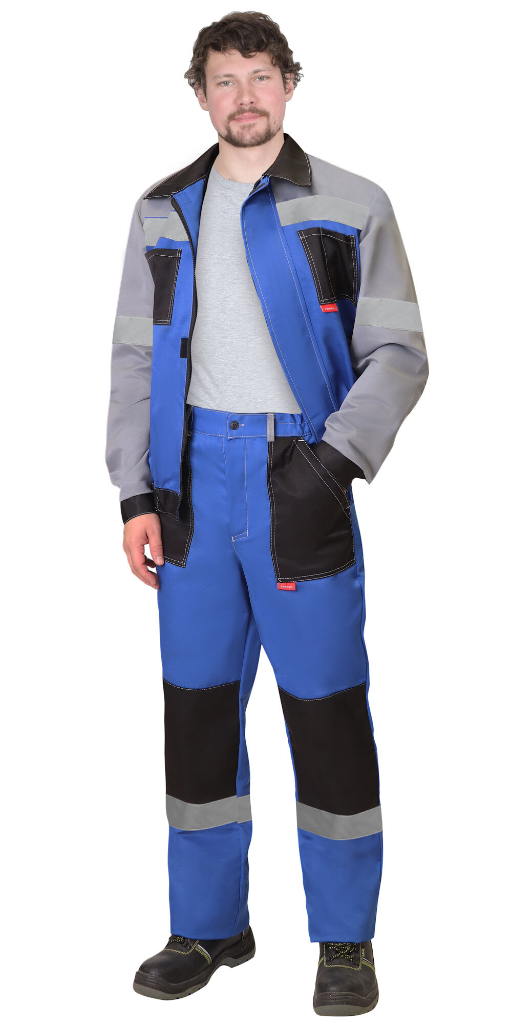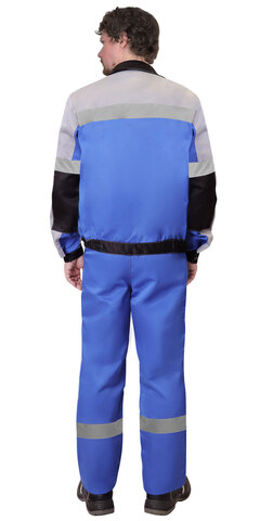Костюм мужской летний "СИРИУС-ЛИГОР" куртка и брюки, васильковый со св.серым и черным, СОП 50мм