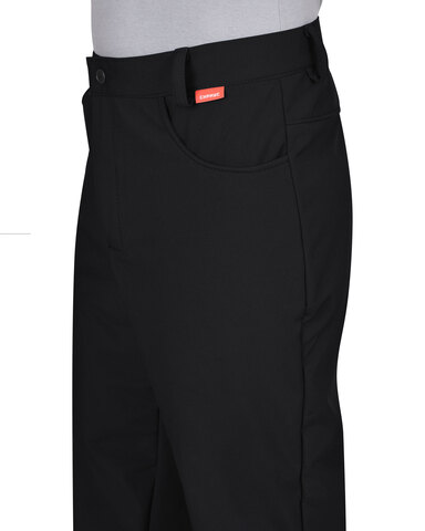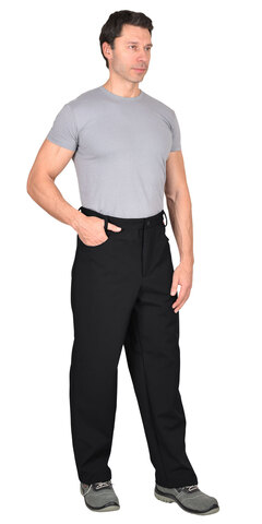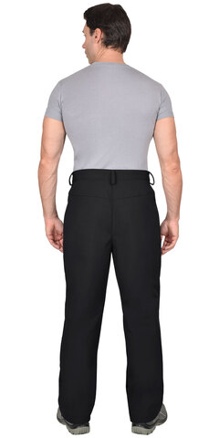 Брюки прямые, на притачном поясе, с застёжкой спереди гульфик на тесьму «молния». Брюки с боковыми внутренними карманами фигурным входом, на задних половинках с отрезной кокеткой. Ткань верха - «Софтшелл» состав: 100% п/э.; пл. 350 г/м ГОСТ 25295-2003