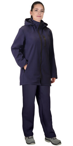 арт.118453 Куртка "СИРИУС-Азов" удлиненная синяя с капюшоном, софтшелл.