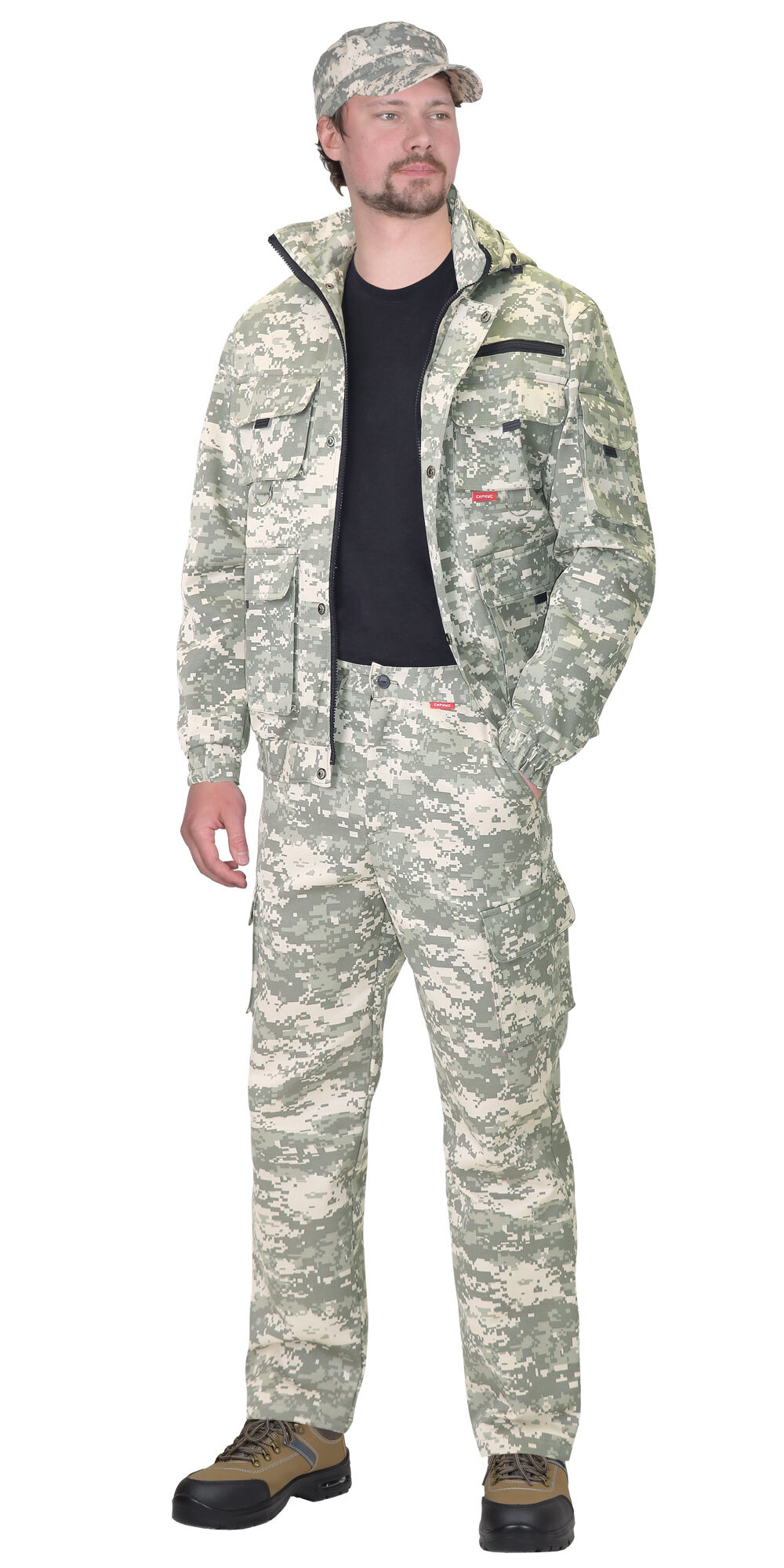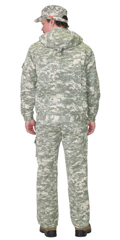 Куртка, укороченная на поясе, пояс частично стянут резинкой для прилегания по фигуре, со съёмным капюшоном. Куртка с воротником стойка, с застёжкой на молнию, закрытую ветрозащитной планкой с кнопками. Куртка с различными многофункциональными накладными карманами с клапанами, рукава куртки с манжетой частично стянутой резинкой, на левом рукаве карман с клапаном. На спинке две вертикальные складки для обеспечения свободы движения.