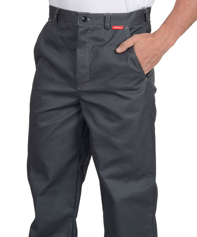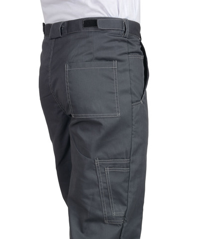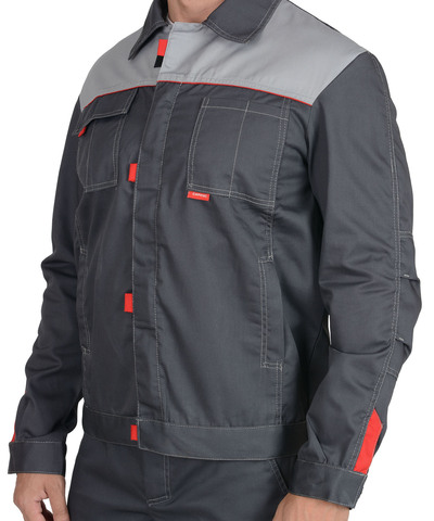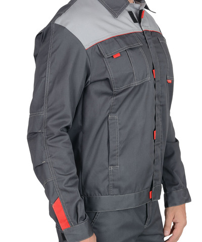 Костюм состоит из куртки и брюк. Куртка, укороченная с центральной потайной застежкой на молнию, застежкой борта и пояса на липучку. Верхние карманы с клапанами и хлястиком, застегивающимися на липучку. Боковые карманы в вертикальных швах. Пояс регулируется хлястиком на липучке. Воротник отложной. Вертикальные складки спинки увеличивают свободу движения. Контрастная отстрочка швов придает костюму оригинальность. Брюки с застежкой гульфика на молнию, боковыми внутренними карманами, с притачным поясом.Рекомендуется для рабочих специальностей. Современная практичная в эксплуатации и очень экономичная модель летней спецодежды. . ГОСТ 12.4.280-2014