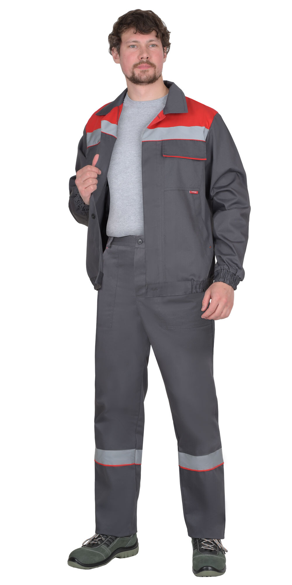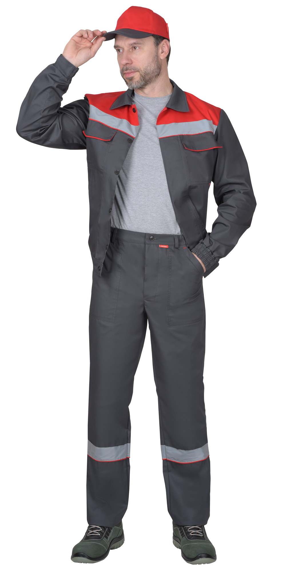 Костюм "СИРИУС-МАСТЕР" летний: куртка, брюки, темно-серый с красной отделкой