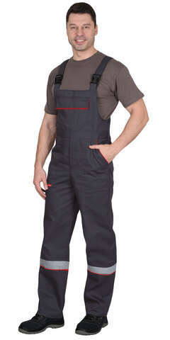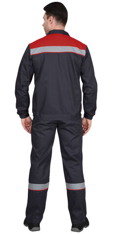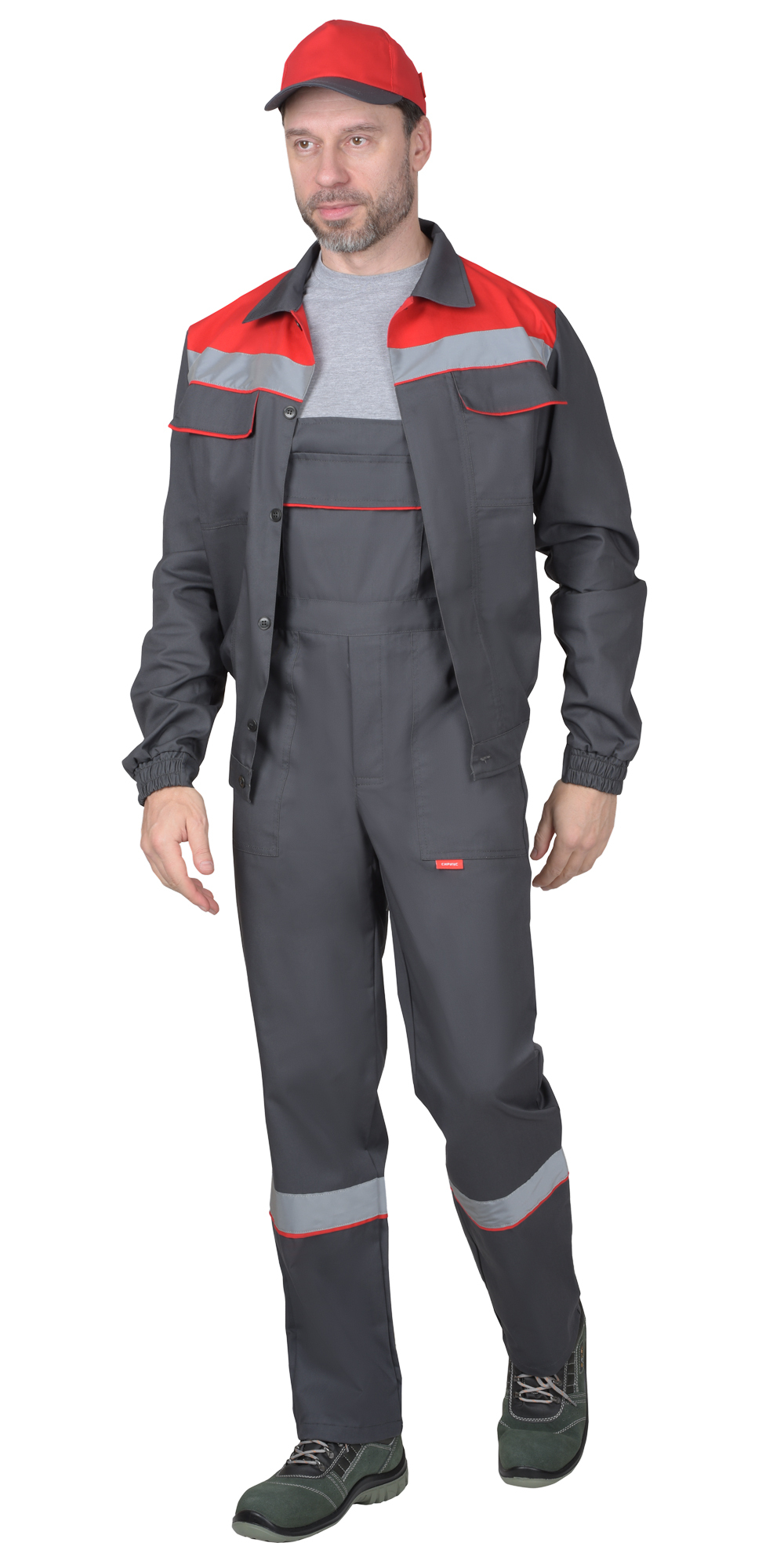 Костюм "СИРИУС-МАСТЕР" летний: куртка, полукомбинезон, темно-серый с красной отделкой