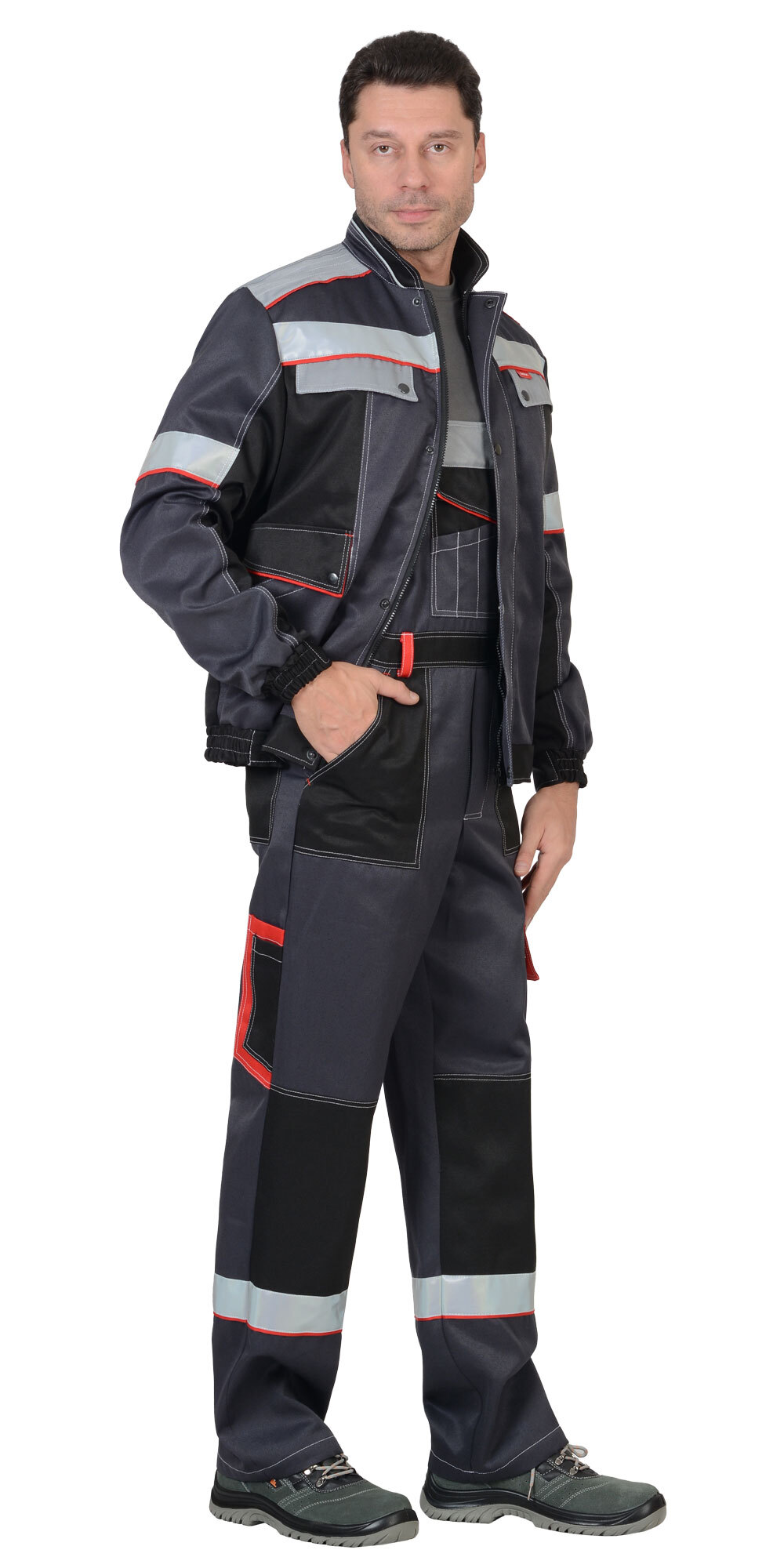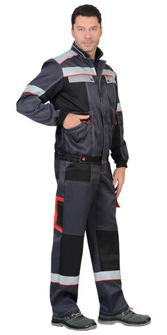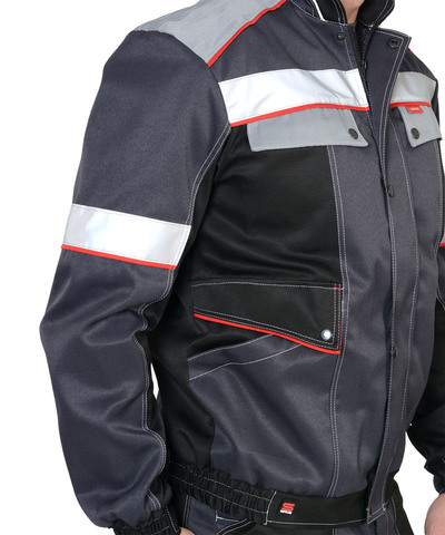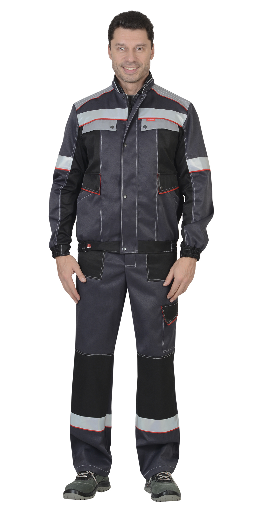 Костюм "СИРИУС-ПОЛИНОМ" куртка, п/к т.серый со св.серым, черным, красным и СОП 50мм