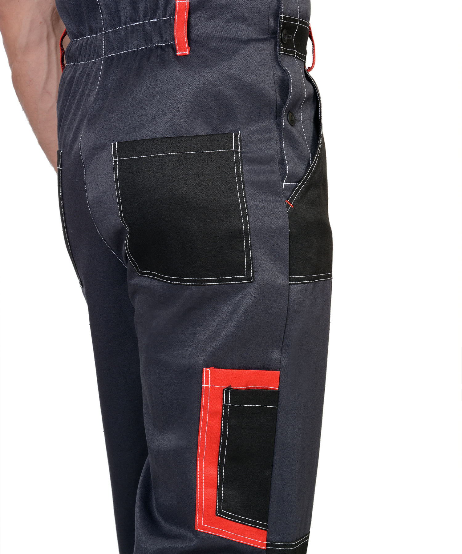 Короткая куртка с застёжкой на молнию, закрытой ветрозащитным клапаном, застёгивающимся на кнопки, с воротником «стойка». Посередине воротника вшивается светоотражающий кант. Нагрудные прорезные карманы с клапанами, застегиваются на липучку и кнопку. Нижние вместительные накладные карманы с клапанами, застегиваются на кнопку. Манжеты рукавов с резинкой по низу для регулировки ширины. Притачной пояс куртки с резинкой по боковым сторонам для мягкого прилегания. Полукомбинезон с застежкой на пуговицы: гульфик и левая боковая застежка. На грудке комбинированный карман с клапаном, застегивается на липучку и кнопку. Передние половинки с боковыми карманами и наколенниками. На левом боковом шве передних половинок накладной карман с клапаном, застегивается на липучку и кнопку. Задние половинки с накладными карманами и карманами для инструментов. По спинке резинка для лучшего прилегания. Полукомбинезон с бретелями, длина регулируется резинкой и застежкой-фастексом.