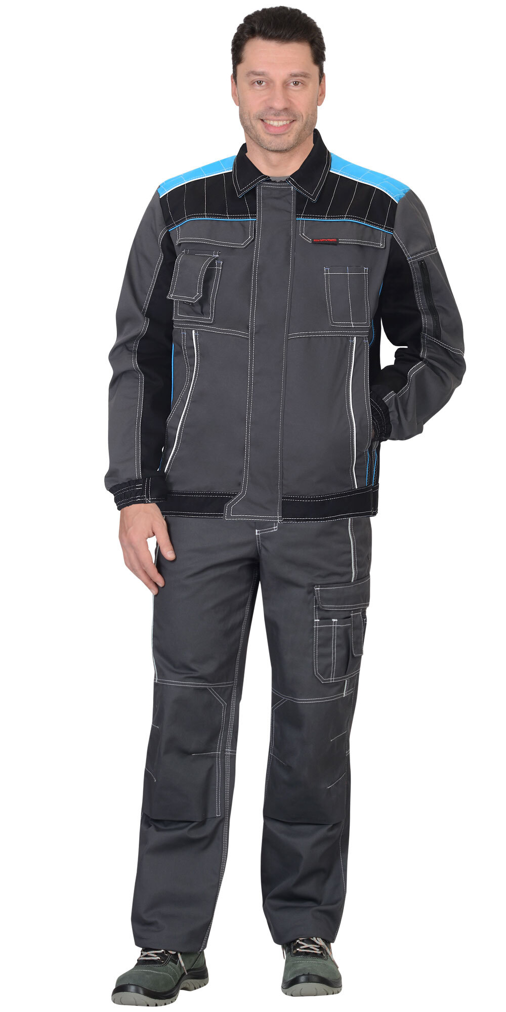 Брюки прямые, на притачном поясе, с застёжкой спереди на молния, с боковыми внутренними карманами, с часовым карманом; на задних половинках с отрезной кокеткой, двумя накладными карманами и карманами под инструменты. В брюках предусмотрен СВ кант для обозначения сигнальной видимости.