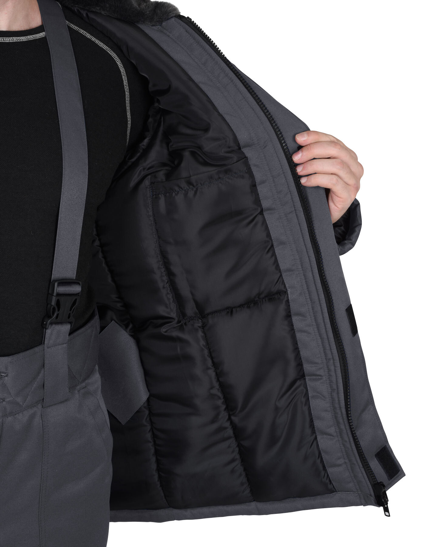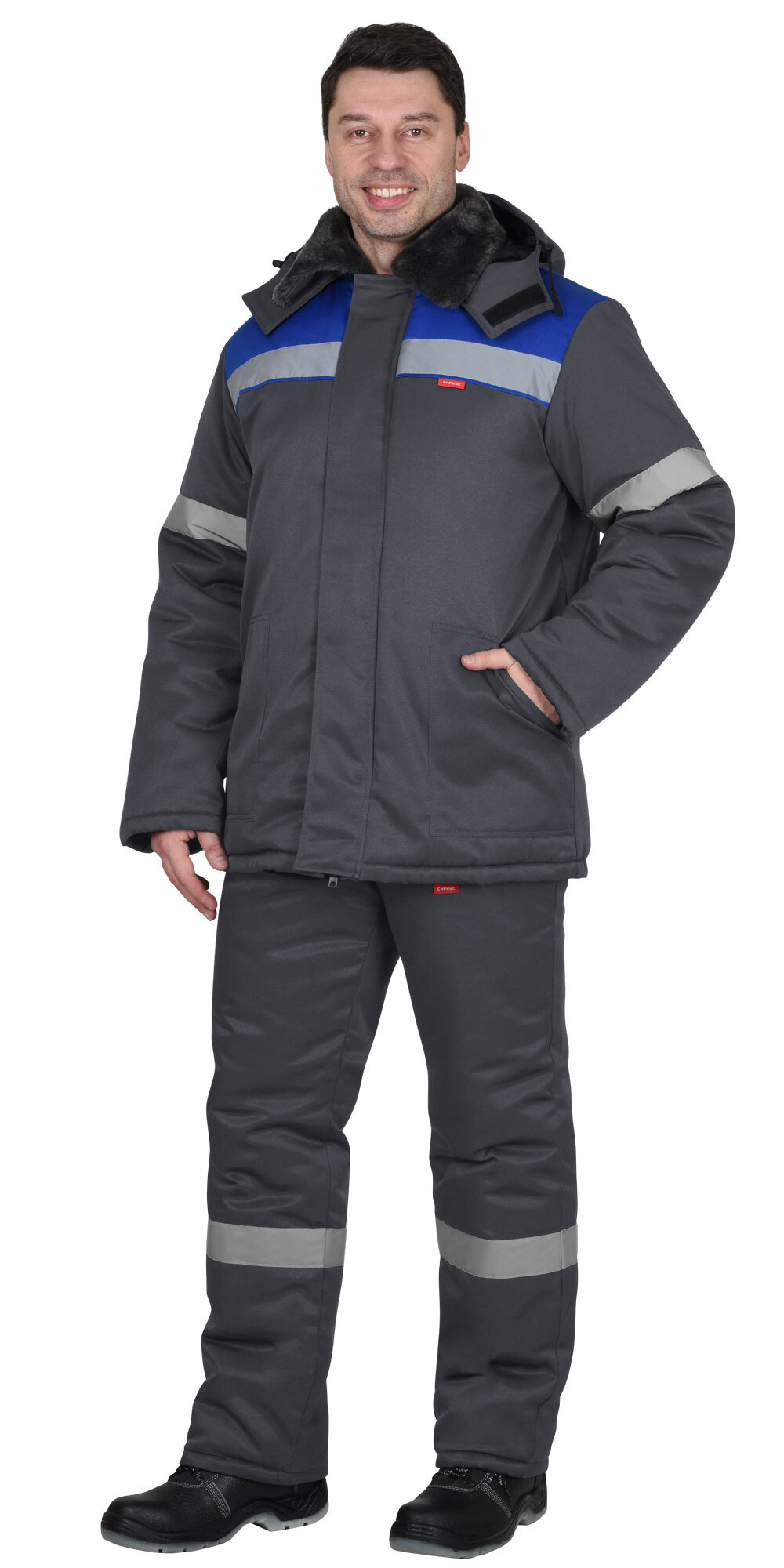 В костюме предусмотрена светоотражающая лента СОП (серая) шириной 50 мм для обеспечения видимости.