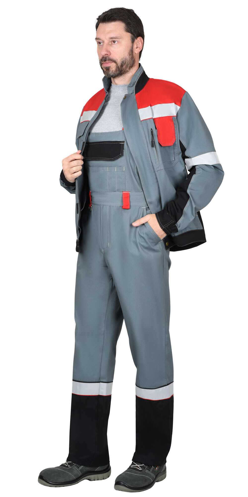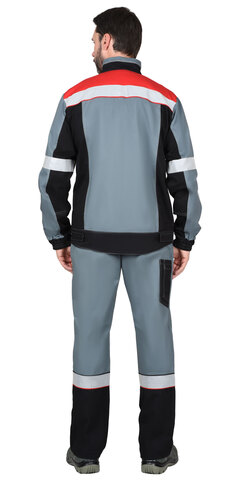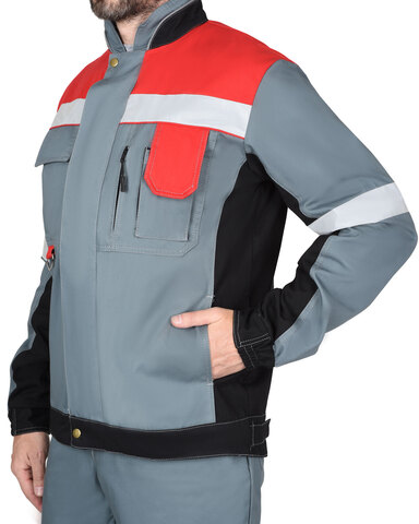 Костюм «СИРИУС-ВИВАТ» комбинированный из ткани трёх цветов, состоит из куртки укороченной и полукомбинезона. В костюме для обозначения сигнальной видимости предусмотрена СОП шириной 50 мм. Куртка укороченная, прямого силуэта, с центральной бортовой застёжкой на тесьму «молния», накрытую ветрозащитным клапаном, застёгивающимся на потайную ленту «контакт» и кнопки 2 шт., с воротником стойка и с верхними накладными и нижними внутренними карманами. По низу куртка с притачным поясом. Рукава втачные, с манжетами. Полукомбинезон прямого кроя с боковой застёжкой на петли и пуговицы и с застёжкой гульфика на молнию. Изделие с отрезной грудкой и цельновыкроенной спинкой, с накладными карманами на грудке и на задних половинках, с бретелями, застёгивающимися на пряжку фастекс.