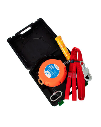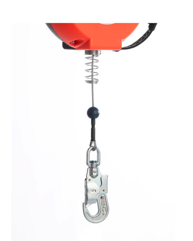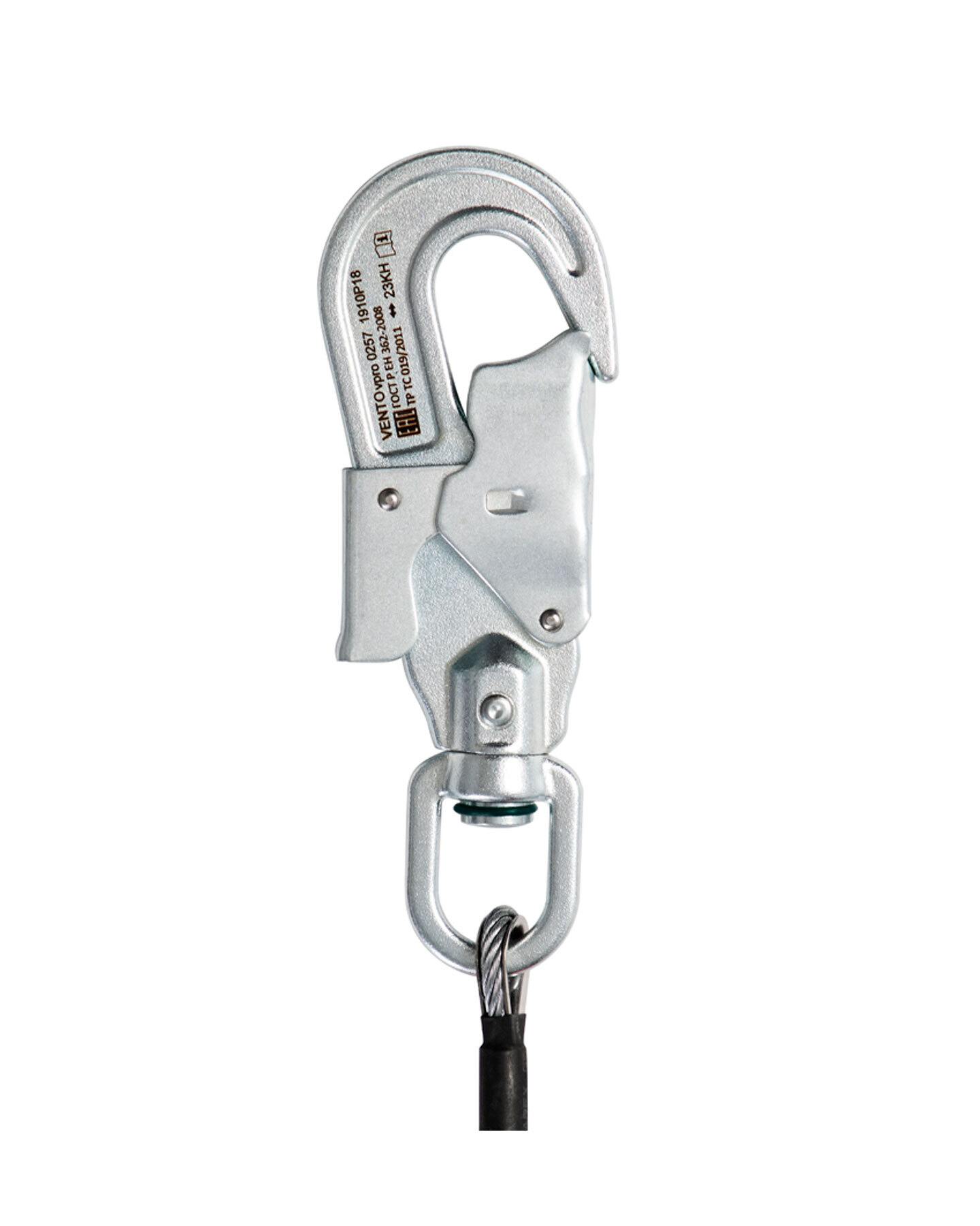 Инерционное блокирующее устройство для организации страховочной системы при работе на высоте. Оптимально подходит для эксплуатации в сложных условиях, в местах, где возможен контакт с агрессивными химическими веществами, при проведении сварочных работ или при использовании обрезного инструмента. Механизм защищен корпусом из композитного противоударного пластика. По мере необходимости трос свободно выдается из устройства и автоматически наматывается обратно. При резком увеличении скорости вытягивания стропы (при срыве) срабатывает функция торможения, прекращающая падение пользователя. Карабин на конце троса имеет вертлюг для предотвращения перекручивания стропы. Индикатор срыва находится на вертлюге. «НВ-15» комплектуется шнуром для вытягивания ленты, карабином «Стальной Овал» (арт. vpro 0013) и фалом крепежным (арт. vnt 257) для организации точки крепления. Устройство поставляется в специальной сумке для хранения и переноски.