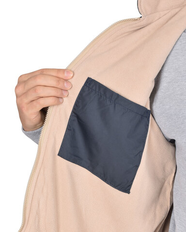 Жилет утеплённый, стёганный, прямого силуэта, на подкладке из флиса с центральной бортовой застёжкой на молнию, с воротником стойка, с нагрудным карманом с молнией и нижними фигурными утеплёнными карманами. Жилет с удлинённой спинкой. ГОСТ 25295-2003