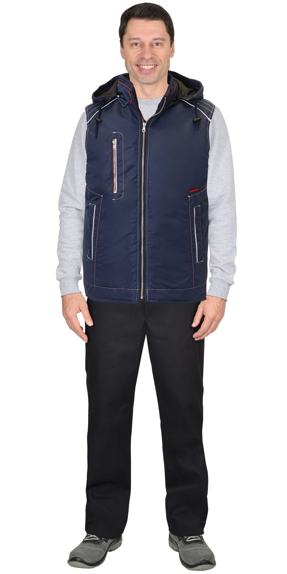 Жилет утепленный с капюшоном "СИРИУС-АЛЕКС" тёмно-синий