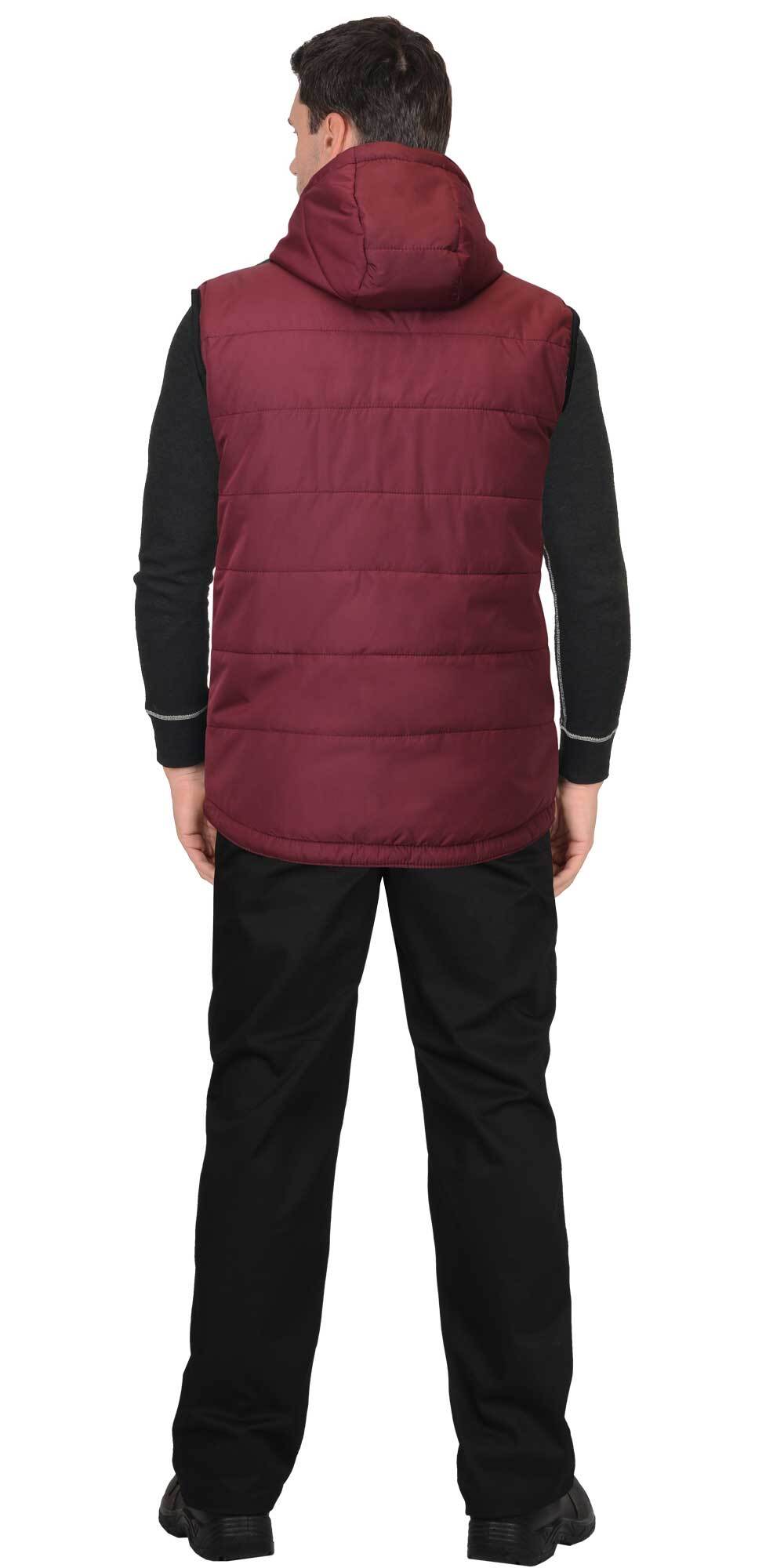 Жилет утепленный с капюшоном "СИРИУС-ЗОДИАК" бордовый с флисовой подкладкой